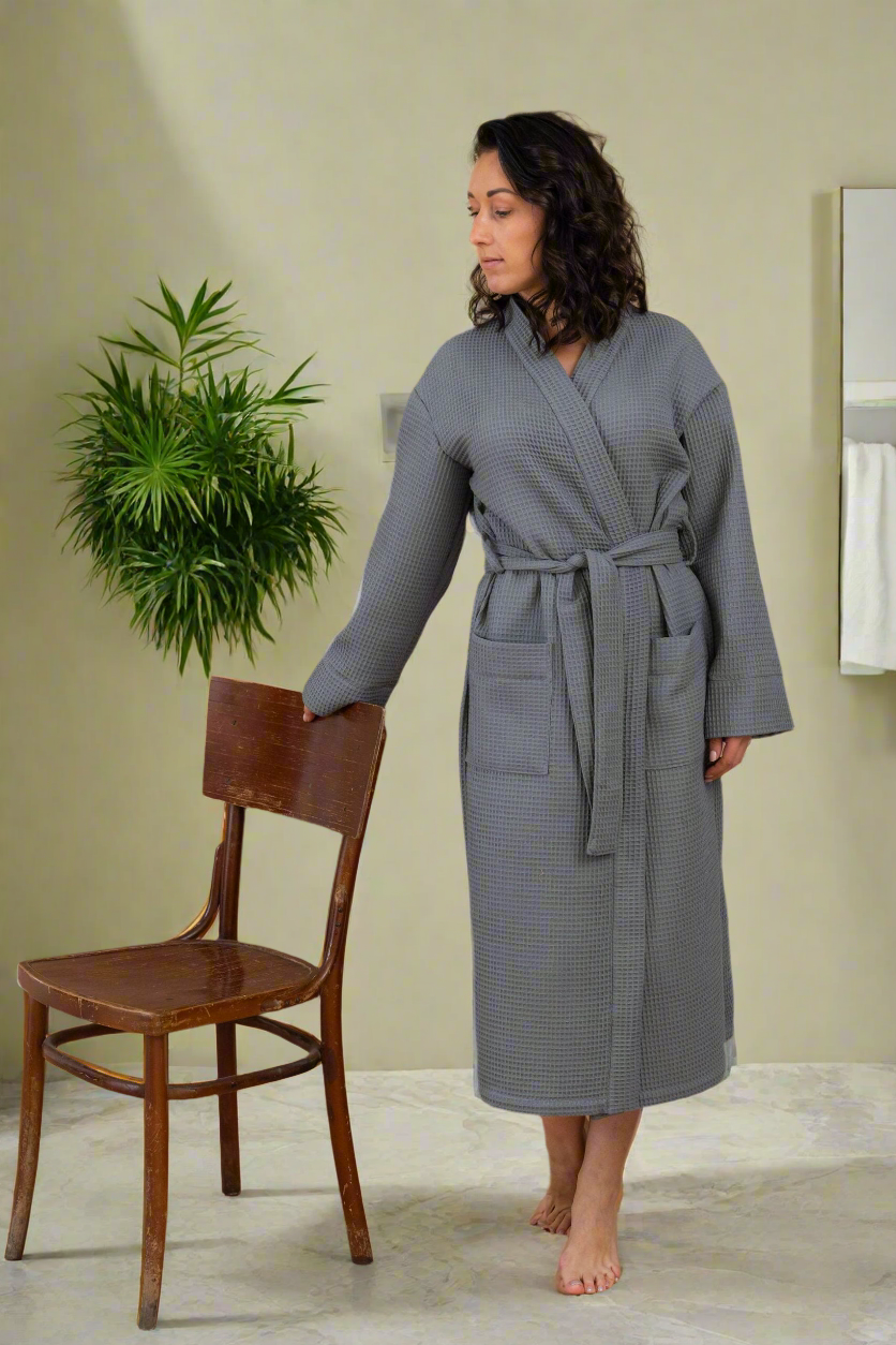 Puuvillainen pitkä vohvelikangaskylpytakki naisille, useita värejä