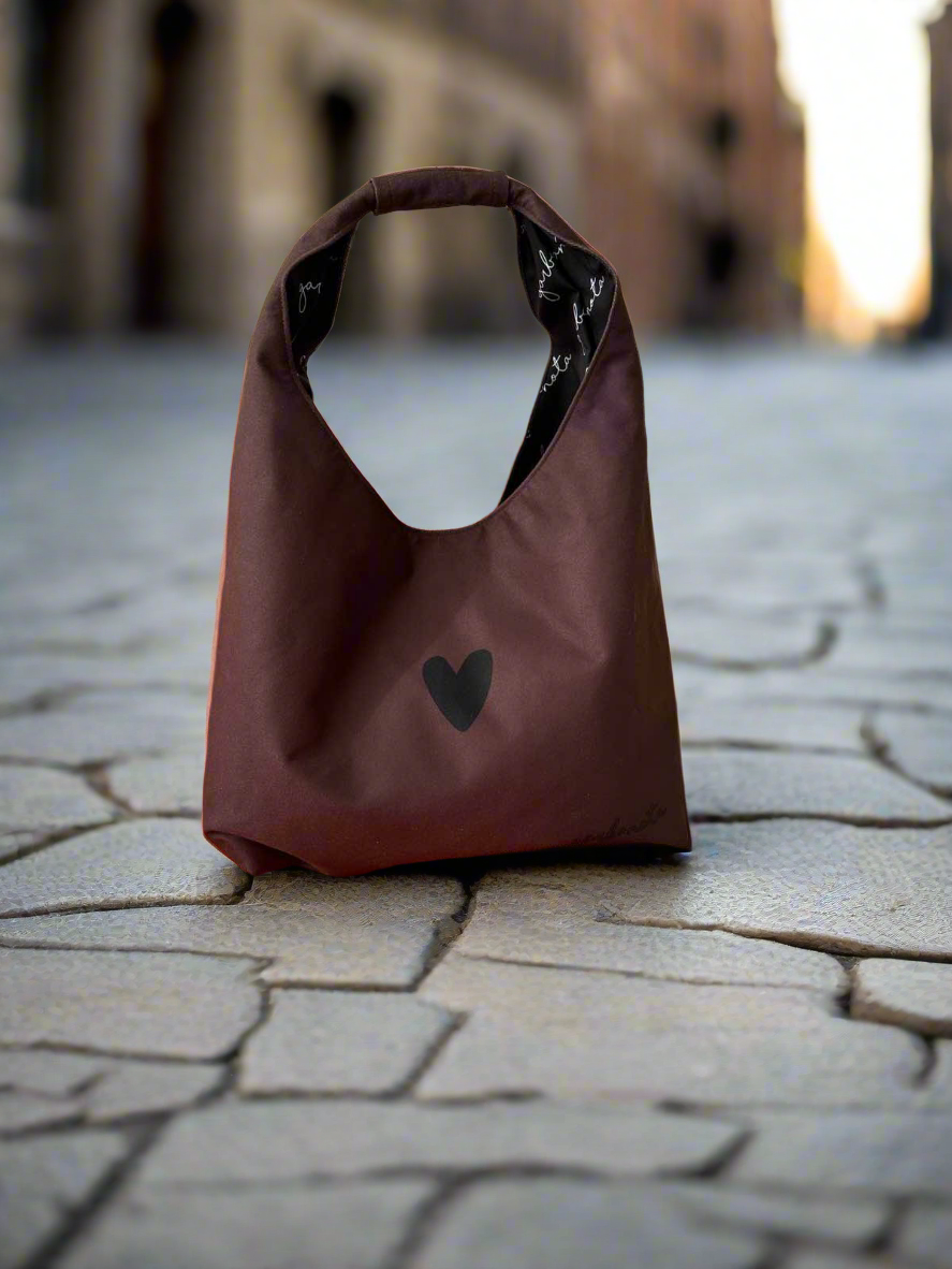 Erittäin tilava, one-size Moon-käsilaukku. Garbonata-valikoiman suosituin käsilaukku. Sisäpuolella on Garbonata-kuosinen vuori ja vetoketjullinen tasku. Laukku suljetaan metallisella painonapilla.